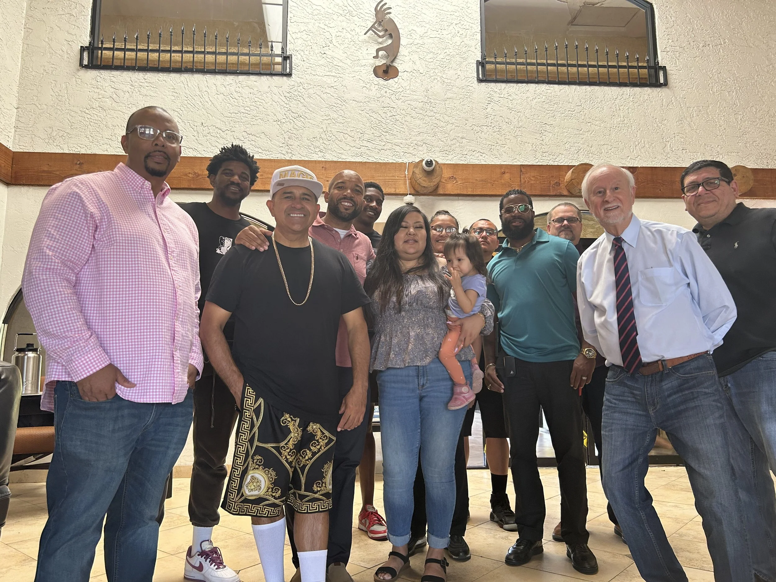 Guest Speaker: MC Magic (Marco Cardenas) with some of our staff after speaking with our Psychological Social / Life Skills Group.